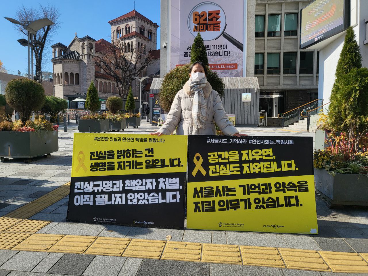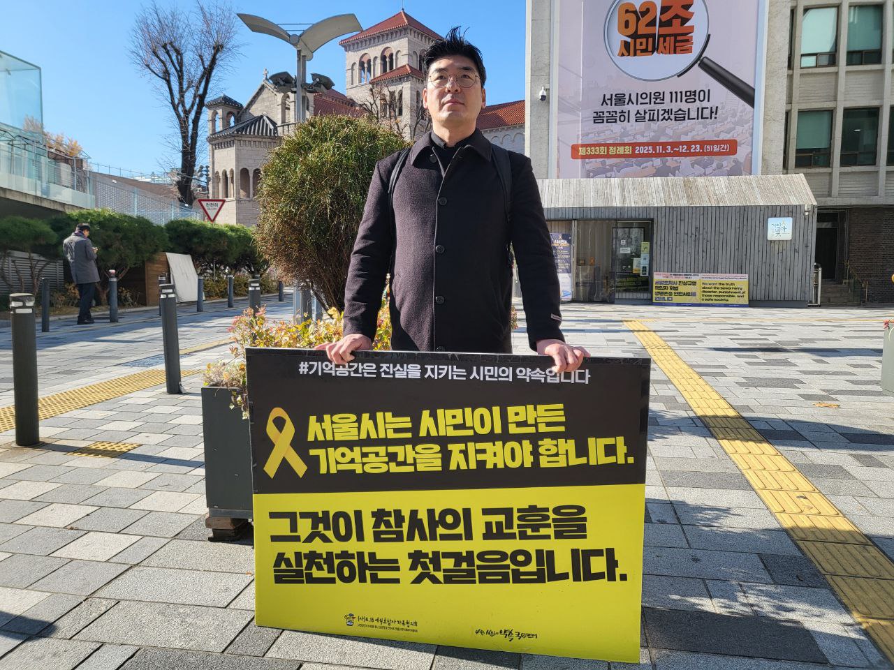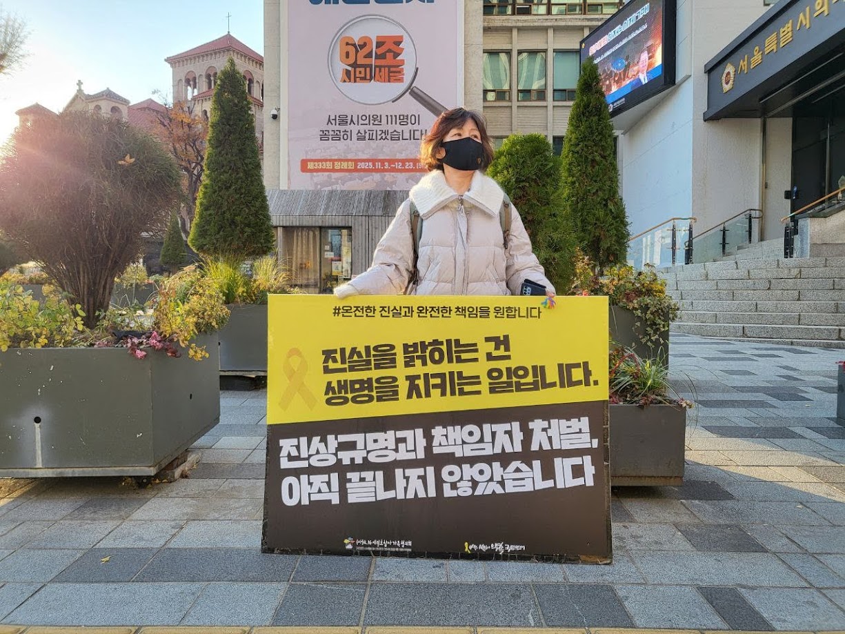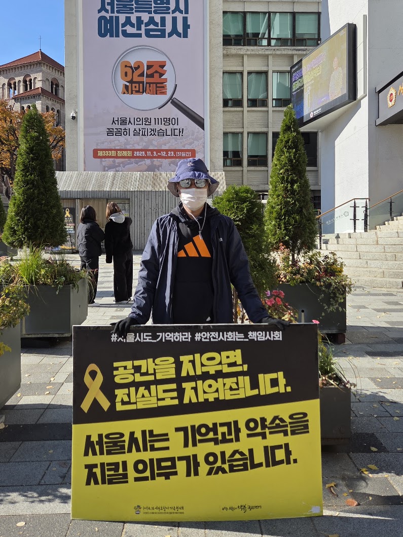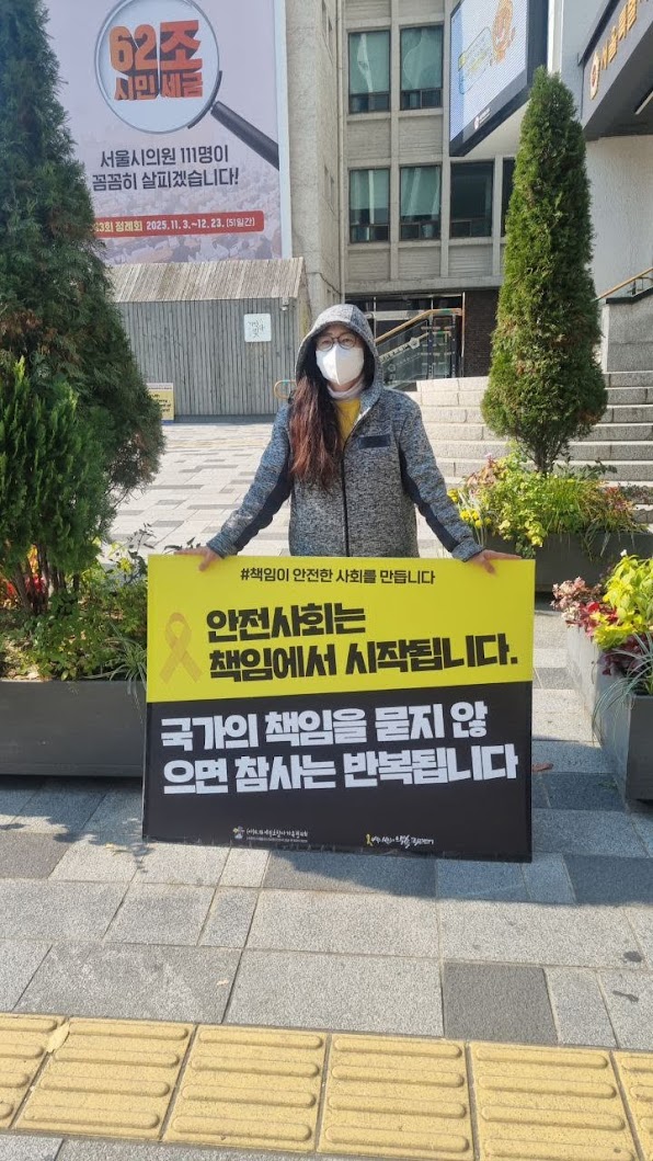 🎗 늘 정신없이 지나첬던 시청역 거리에 기억공간이 있다는 사실조차 알지 못했습니다. 바쁜 일상 속에서도 잠깐이라도 기억하는 시간을 가집니다. 잊지 않겠습니다. 버티고 기다려주시는 모든 피해자, 피해자 가족분들 고맙고 미안합니다.