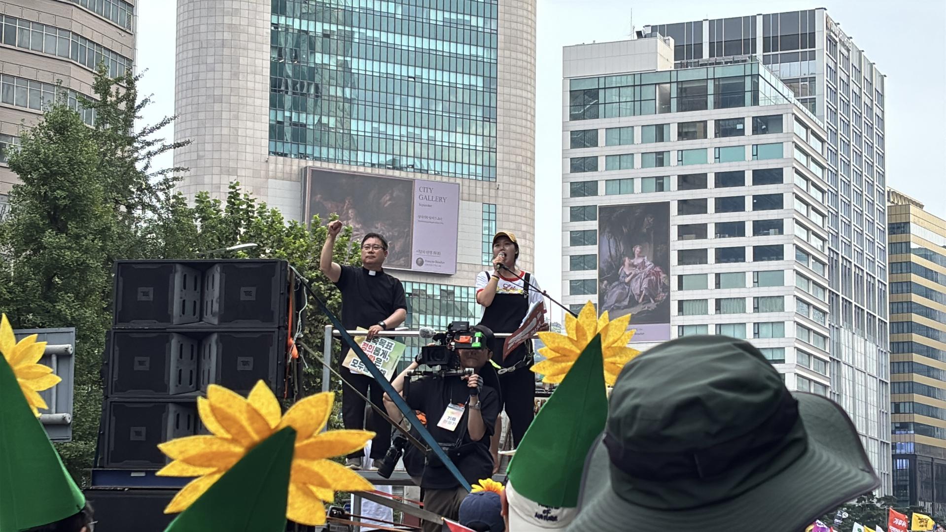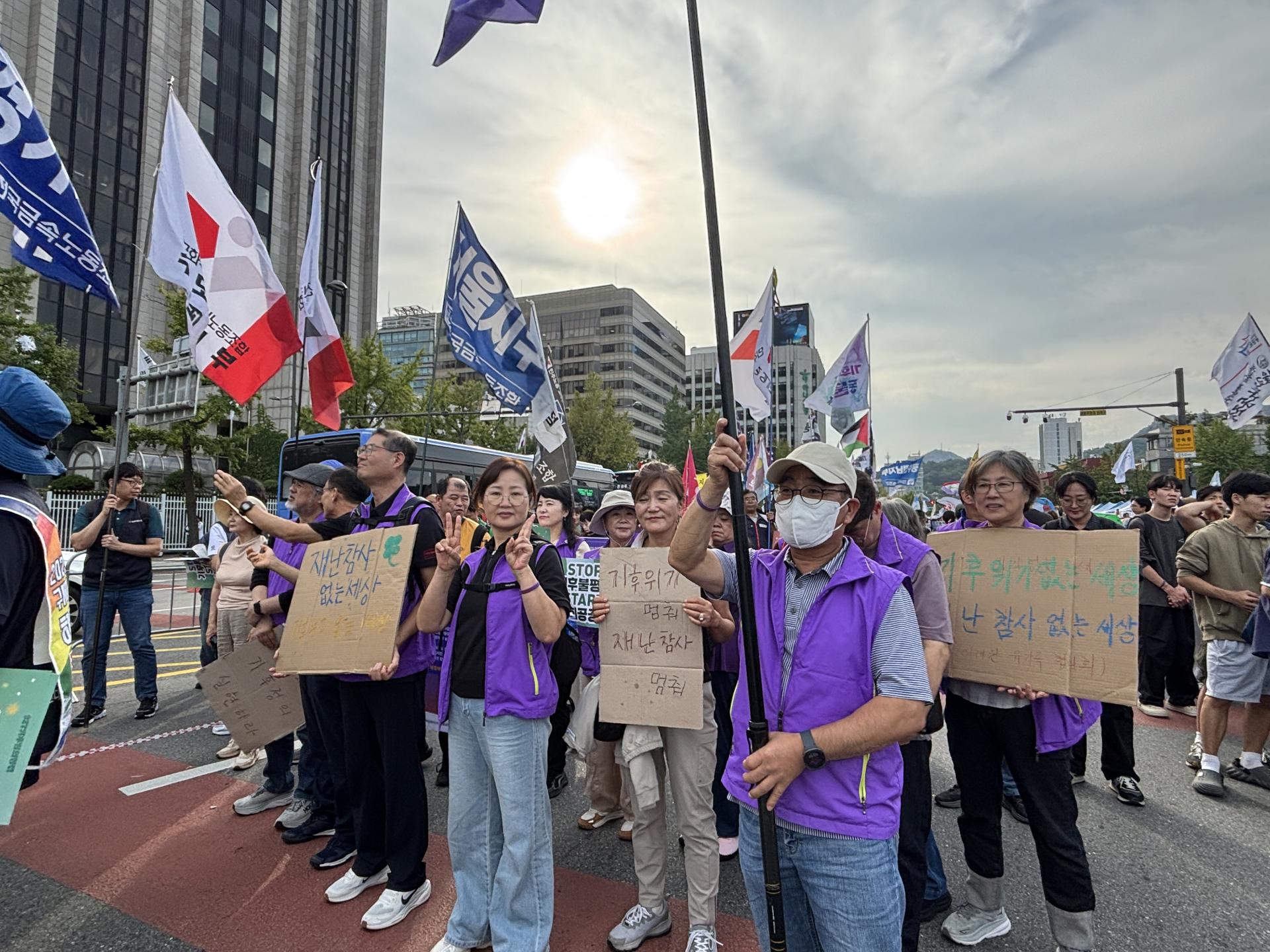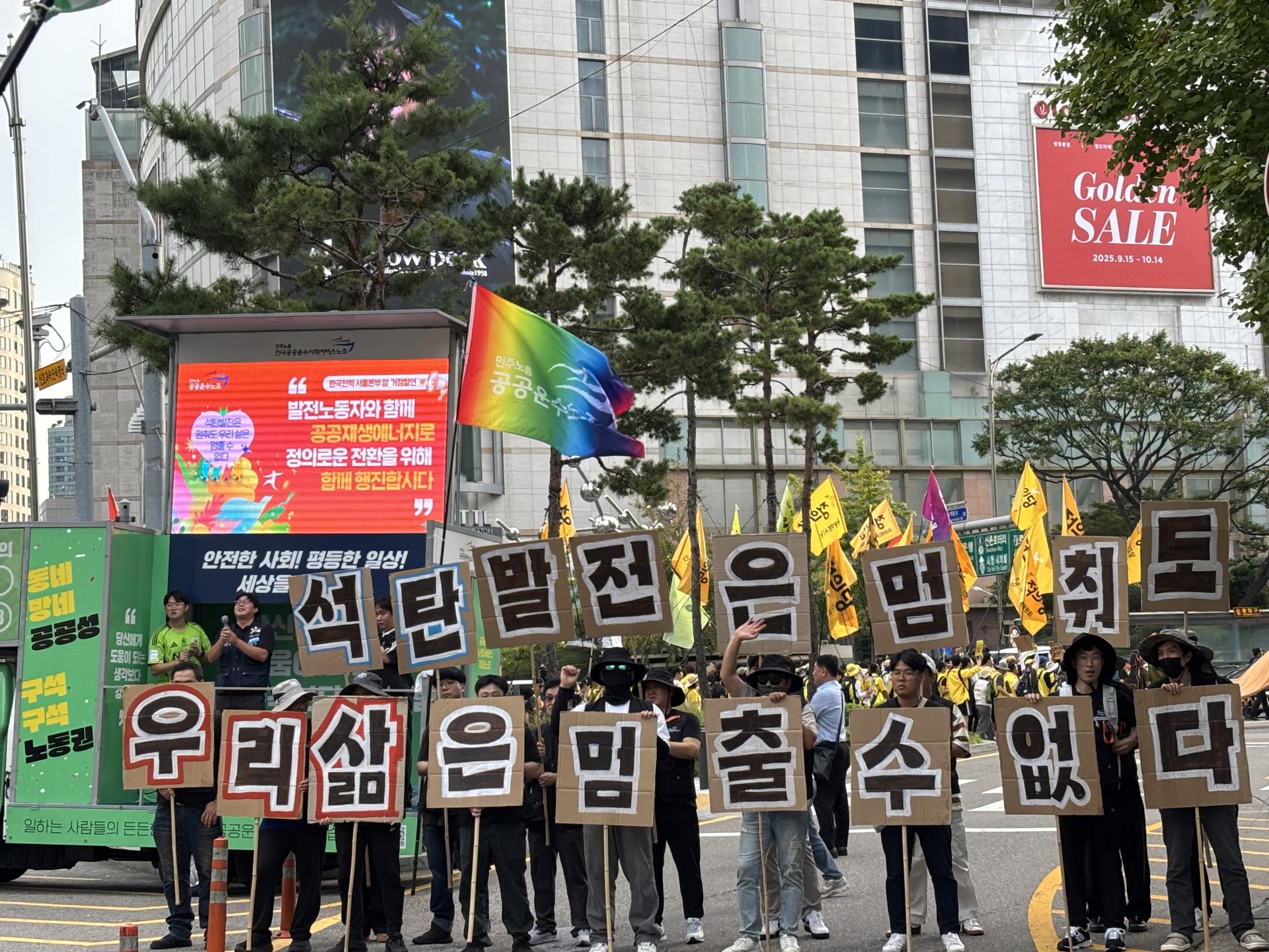 이후 행진은 6개 거점을 거쳐 이어졌습니다. 기후정의 실현을 위한 감축 거점, 농업을 살리고 기후위기에 맞서는 농민 거점, 공공재생에너지로 전환을 요구하는 에너지 거점, 기후재난과 불평등에 맞서는 공공성 거점, 전쟁과 학살을 종식하자는 평화 거점, 성장주의와 난개발에 맞서는 생태돌봄 거점까지, 각각의 거점은 기후위기와 맞닿은 사회적 의제를 분명하게 드러내며 시민들의 발걸음을 이끌었습니다.